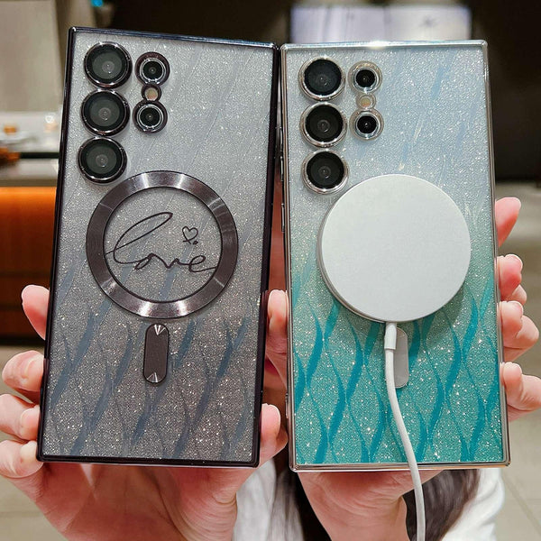For Samsung Galaxy S25+ 5G Dual-Love Leaves Gradient Glitter MagSafe TPU Phone Case(Pink)