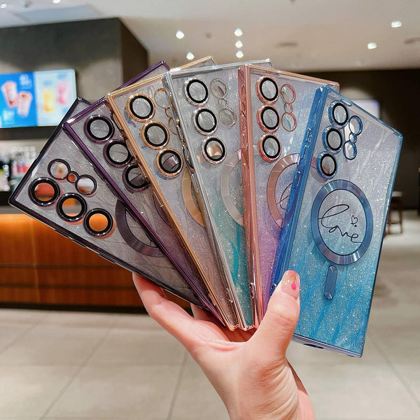 For Samsung Galaxy S25 5G Dual-Love Leaves Gradient Glitter MagSafe TPU Phone Case(Purple)