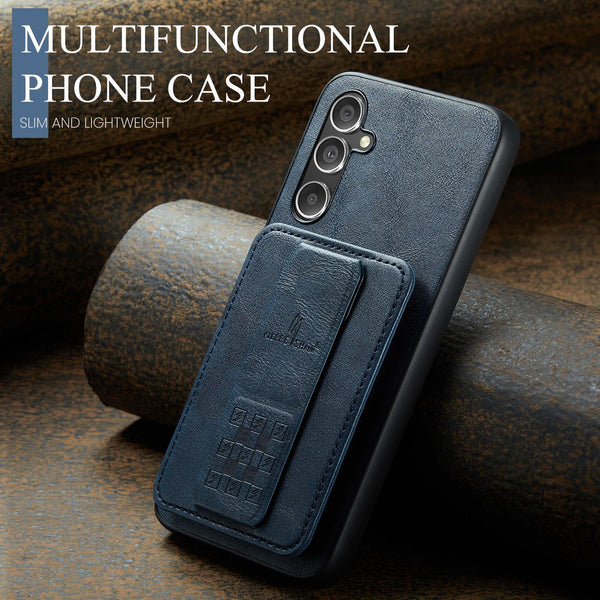 For Samsung Galaxy S25+ 5G Fierre Shann FS-024 Oil Wax Cow Leather Card Holder Back Phone Case(Blue)