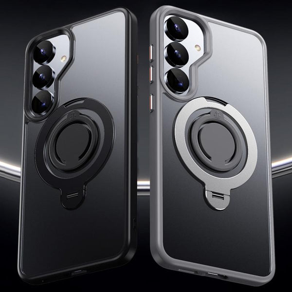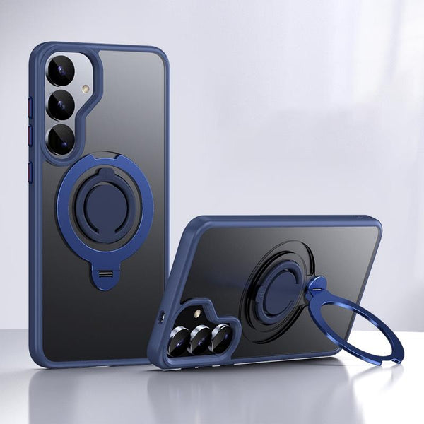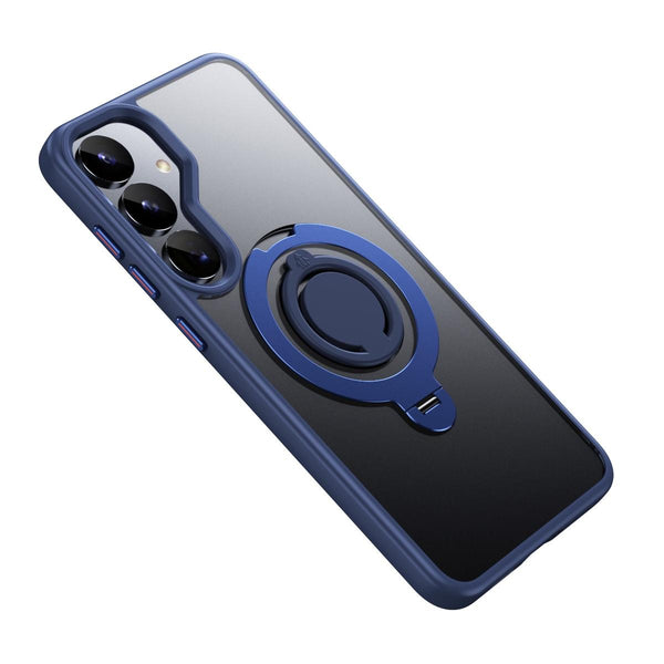 For Samsung Galaxy S25+ 5G Frosted MagSafe Phone Case with 360 Degree Rotating Holder(Blue)