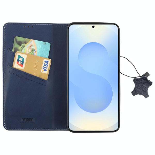 For Samsung Galaxy S25 5G GEBEI Top-grain Horizontal Flip Leather Phone Case(Blue)