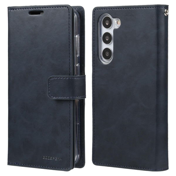 For Samsung Galaxy S25 5G GOOSPERY MANSOOR DIARY 9 Card Slots Leather Phone Case(Dark Blue)