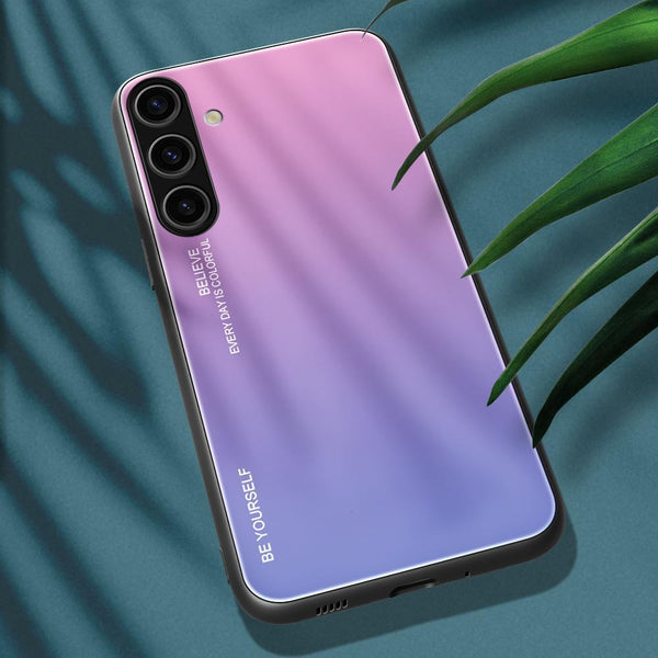 For Samsung Galaxy S25+ 5G Gradient Color Glass Phone Case(Pink Purple)