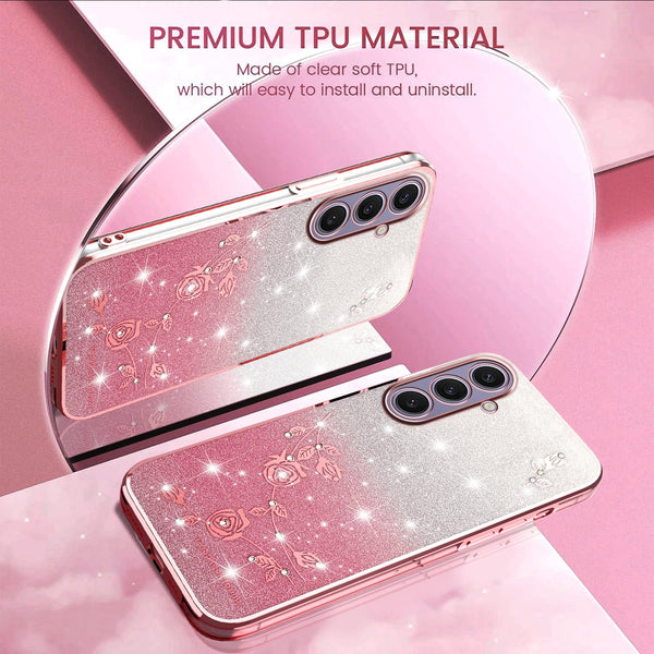For Samsung Galaxy S25+ 5G Gradient Glitter Flower All-inclusive Phone Case(Pink)