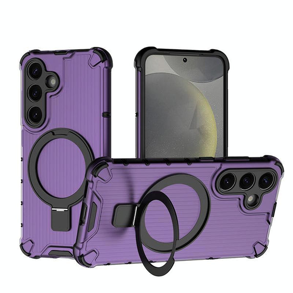For Samsung Galaxy S25 5G Grating 360 Degree Rotating Holder Shockproof Phone Case(Purple)
