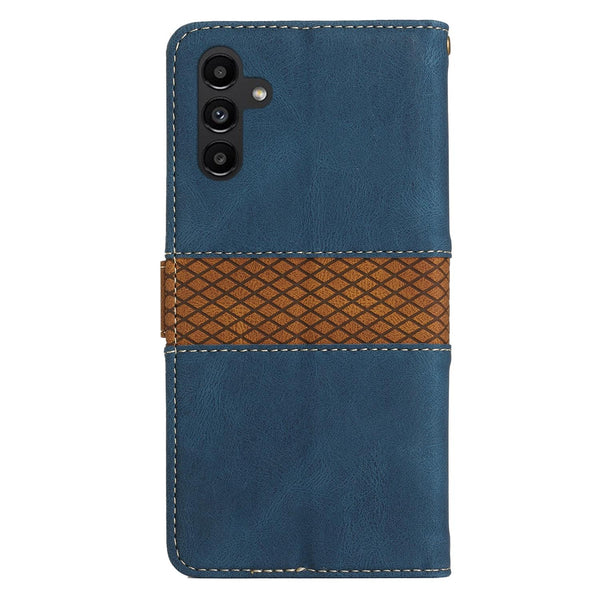 For Samsung Galaxy S25 5G Grid Stitching Leather Phone Case with Lanyard(Blue)