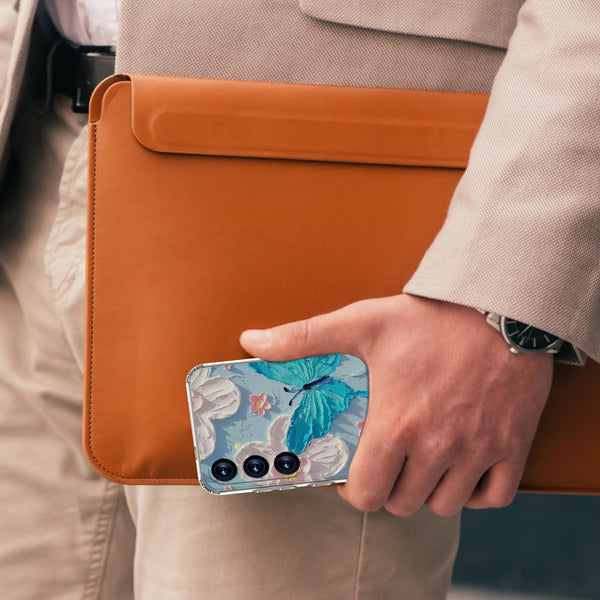 For Samsung Galaxy S25+ 5G IMD Double Piece Simple Fresh Shockproof Phone Case(Blue Butterfly)