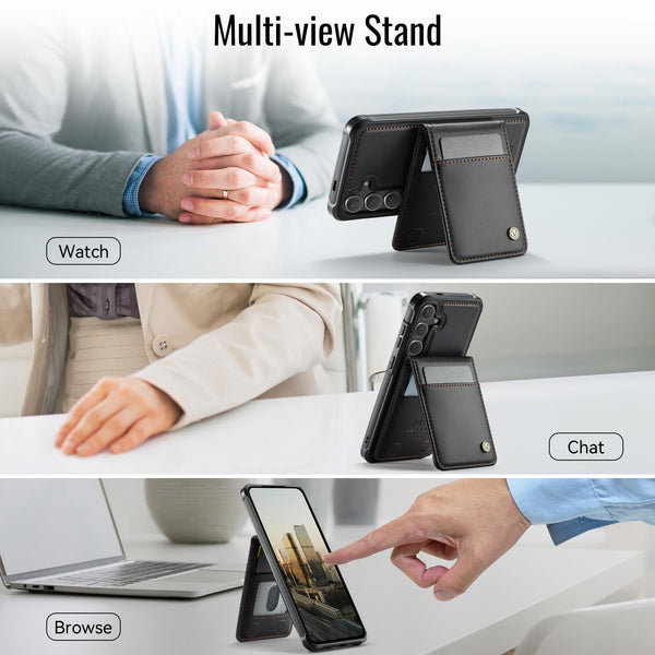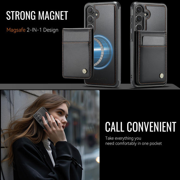 For Samsung Galaxy S25 5G JEEHOOD J06 British Style RFID MagSafe Card Bag PU Phone Case(Black)