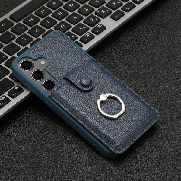 For Samsung Galaxy S25+ 5G Litchi Texture Drawing Card Bag Ring Holder Phone Case(Blue)