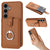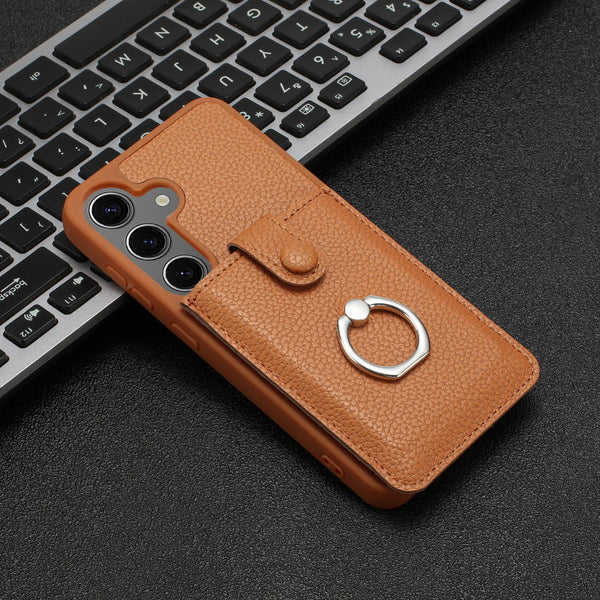 For Samsung Galaxy S25+ 5G Litchi Texture Drawing Card Bag Ring Holder Phone Case(Brown)