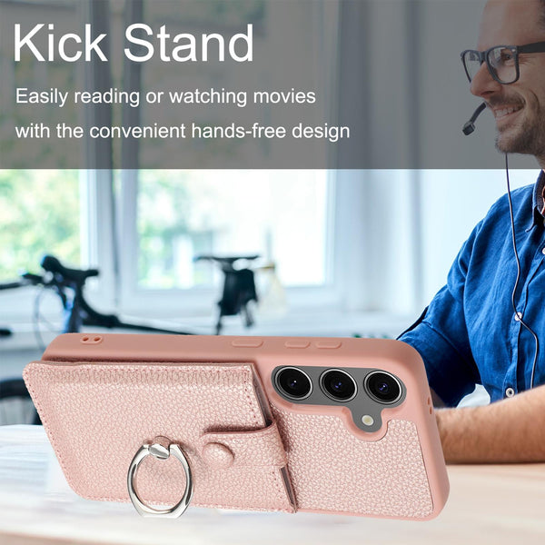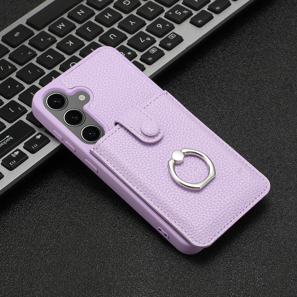 For Samsung Galaxy S25 5G Litchi Texture Drawing Card Bag Ring Holder Phone Case(Purple)