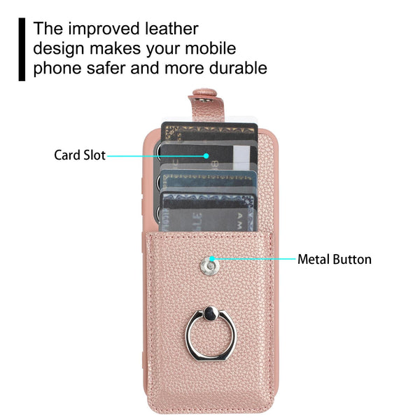 For Samsung Galaxy S25+ 5G Litchi Texture Drawing Card Bag Ring Holder Phone Case(Rose Gold)