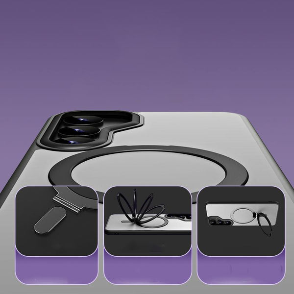 For Samsung Galaxy S25 5G MagSafe Airbag Shockproof Frosted Phone Case with Fold Holder(Blue)