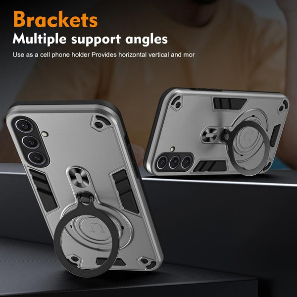 For Samsung Galaxy S25+ 5G Metal Ring 360 Degree Rotating Holder PC Hybrid TPU Phone Case(Silver Grey)