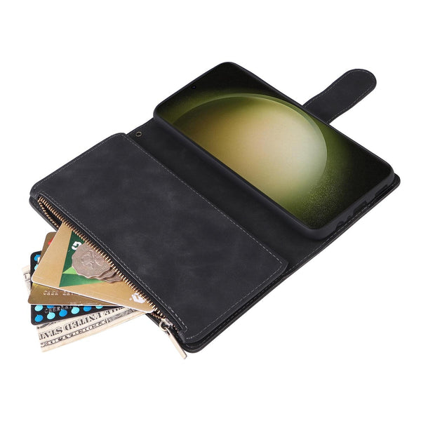 For Samsung Galaxy S25+ 5G Multifunctional Frosted Zipper Wallet Leather Phone Case(Black)