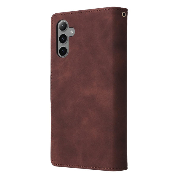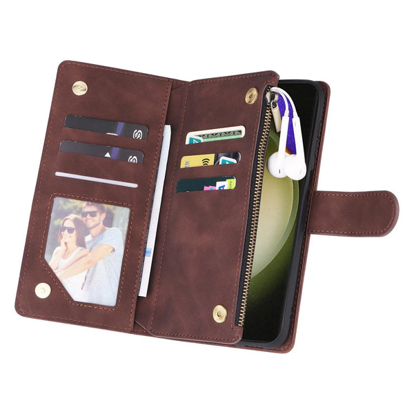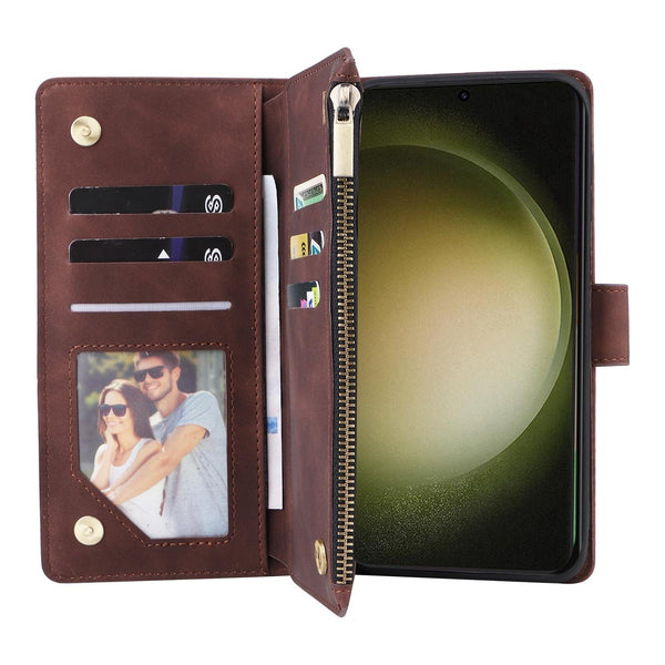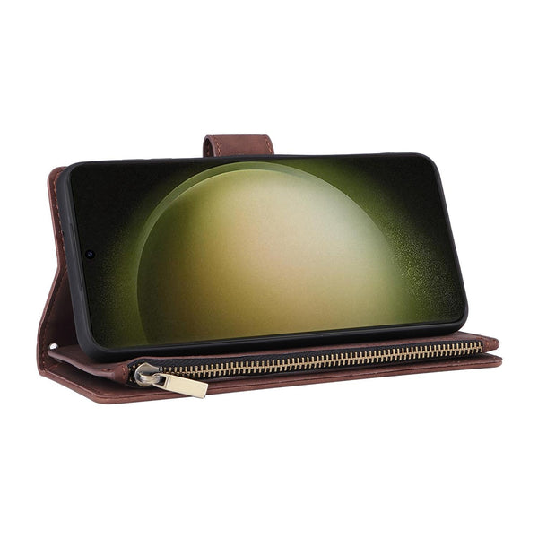 For Samsung Galaxy S25+ 5G Multifunctional Frosted Zipper Wallet Leather Phone Case(Coffee)