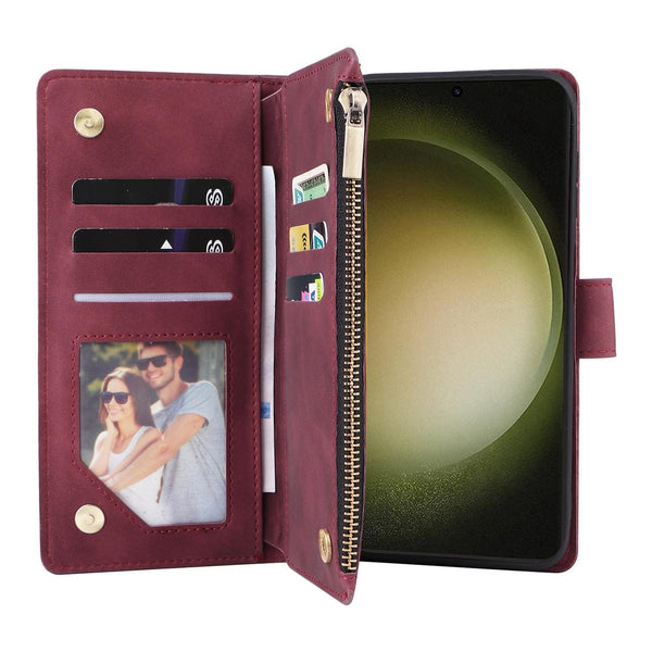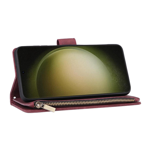 For Samsung Galaxy S25+ 5G Multifunctional Frosted Zipper Wallet Leather Phone Case(Wine Red)