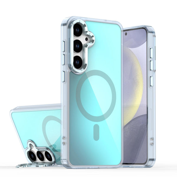 For Samsung Galaxy S25+ 5G Plating Gradient Discolor MagSafe Phone Case with Holder(Blue)