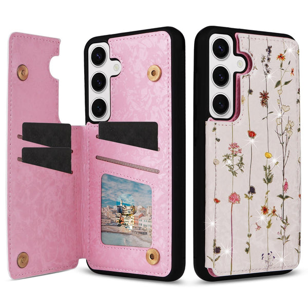 For Samsung Galaxy S25 5G Printed Double Buckle RFID Anti-theft Phone Case(Dried Flower World)