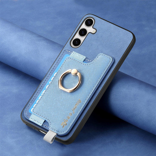 For Samsung Galaxy S25+ 5G Retro Cross Leather Ring Horizontal Insert Card Bag MagSafe Phone Case(Blue)
