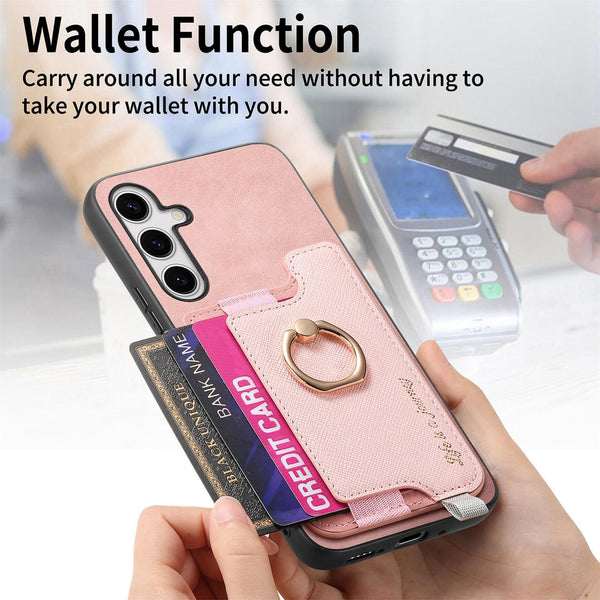 For Samsung Galaxy S25+ 5G Retro Cross Leather Ring Horizontal Insert Card Bag MagSafe Phone Case(Pink)