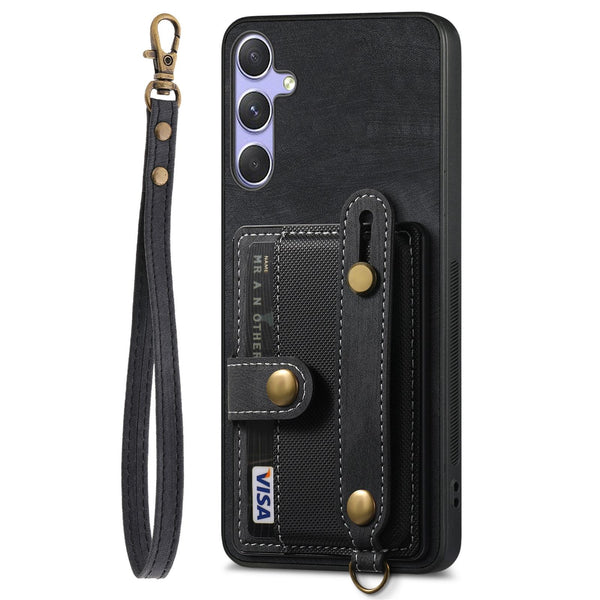 For Samsung Galaxy S25+ 5G Retro Cross Wristband Wallet Leather Back Phone Case(Black)