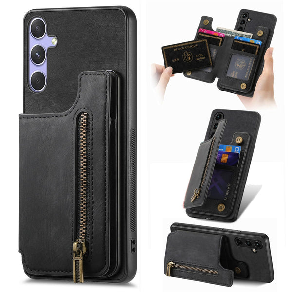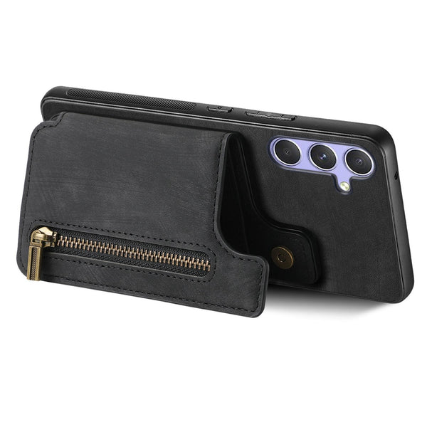 For Samsung Galaxy S25+ 5G Retro Leather Zipper Wallet Back Phone Case(Black)