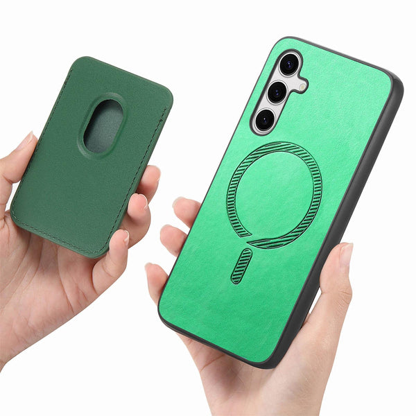 For Samsung Galaxy S25 5G Retro Magsafe Card Bag PU Back Cover Phone Case(Green)