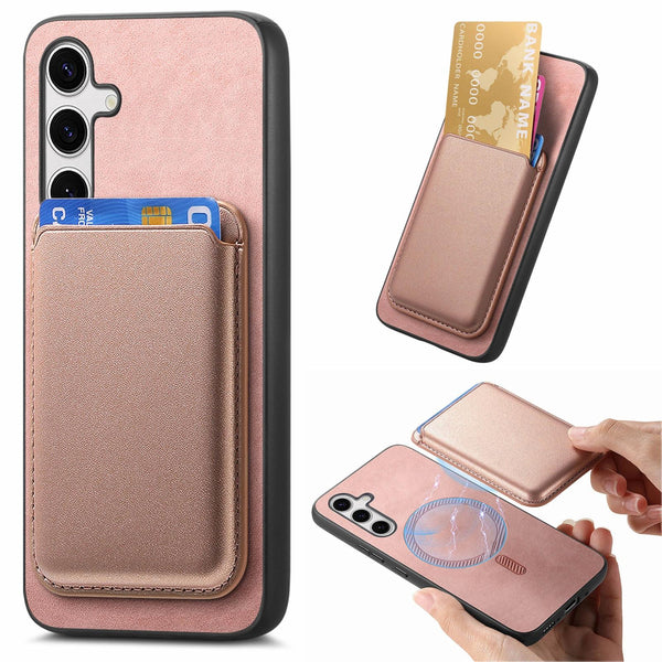 For Samsung Galaxy S25 5G Retro Magsafe Card Bag PU Back Cover Phone Case(Pink)