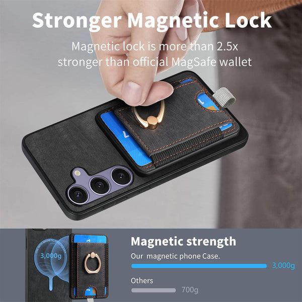 5. The leather wallet features strong built-in magnets that allow it to effortlessly snap into place on the back of your phone, easy to use and remove.