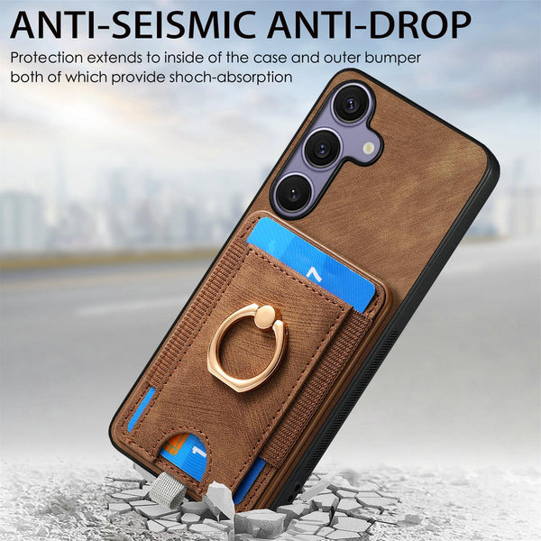 For Samsung Galaxy S25 5G Retro Splitable Magnetic Card Bag Leather Phone Case(Brown)