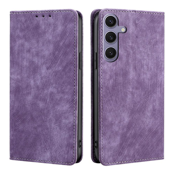 For Samsung Galaxy S25+ 5G RFID Anti-theft Brush Magnetic Leather Phone Case(Purple)