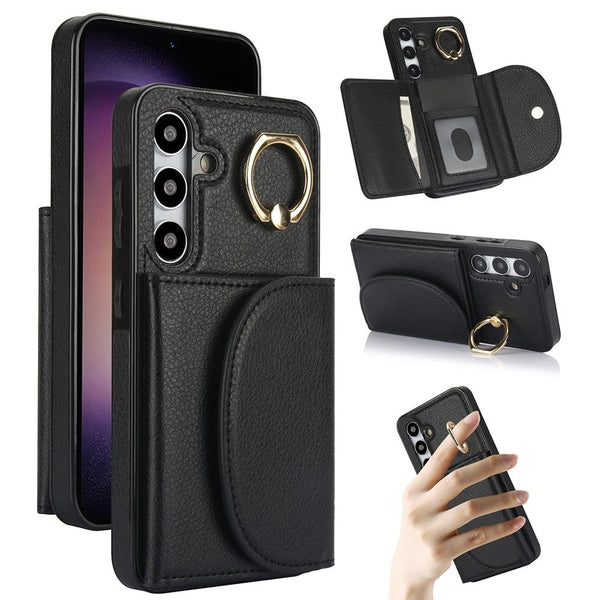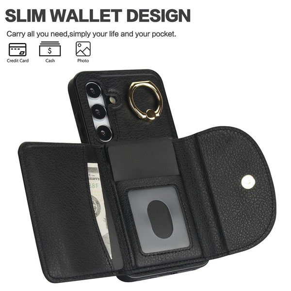 For Samsung Galaxy S25 5G Ring Holder Card Bag Skin Feel Phone Case(Black)