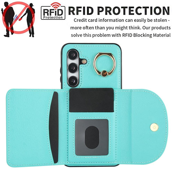 For Samsung Galaxy S25 5G Ring Holder Card Bag Skin Feel Phone Case(Green)