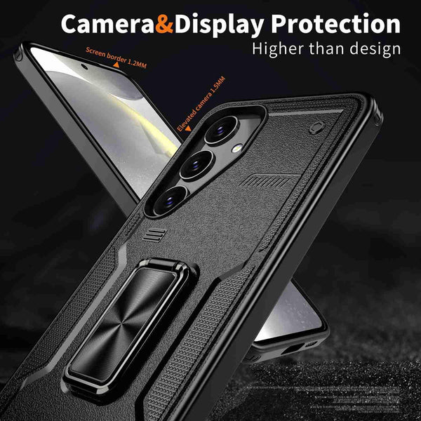 For Samsung Galaxy S25 5G Ring Holder PC Hybrid TPU Phone Case(Black)