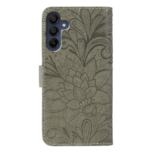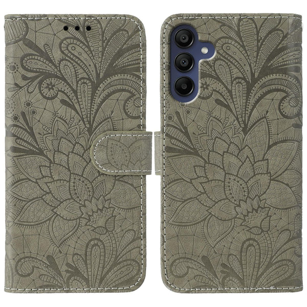 For Samsung Galaxy S25+ 5G / S24+ 5G Lace Flower Embossing Flip Leather Phone Case(Grey)