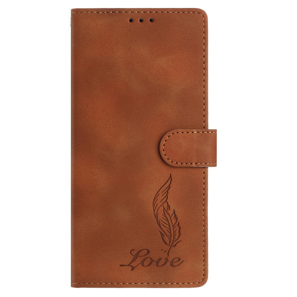 For Samsung Galaxy S25 5G / S24 5G Skin Feel Embossed Feather Leather Phone Case(Brown)