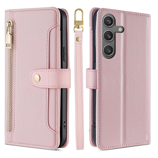 For Samsung Galaxy S25 5G Sheep Texture Cross-body Zipper Wallet Leather Phone Case(Pink)