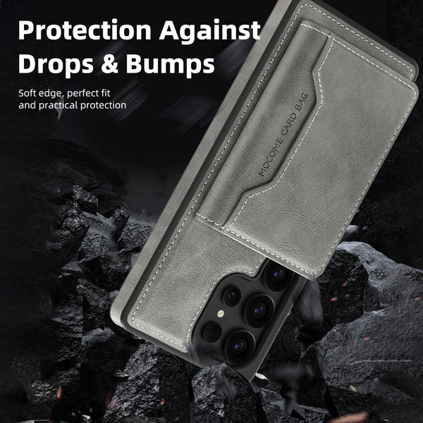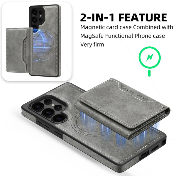 For Samsung Galaxy S25 5G Shield Multi-functional MagSafe Card Bag Phone Case(Grey)