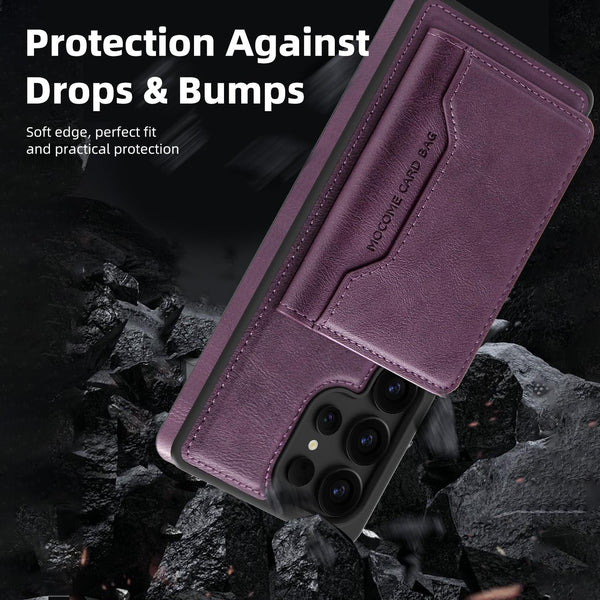 For Samsung Galaxy S25+ 5G Shield Multi-functional MagSafe Card Bag Phone Case(Purple)