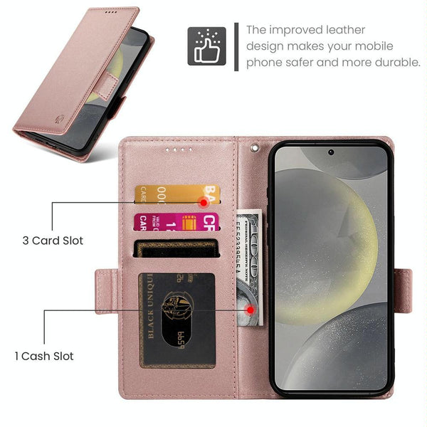 For Samsung Galaxy S25 5G Side Buckle Magnetic Frosted Leather Phone Case(Rose Gold)