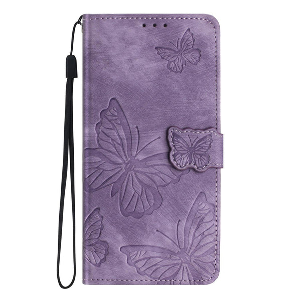 For Samsung Galaxy S25+ 5G Skin-feel Embossed Butterfly Leather Phone Case(Purple)