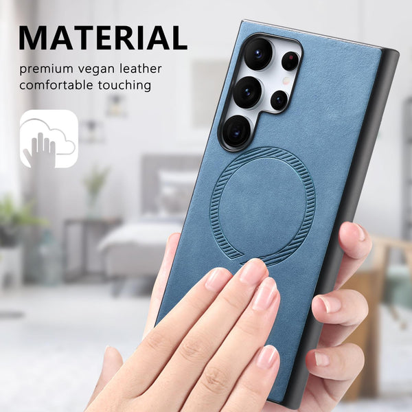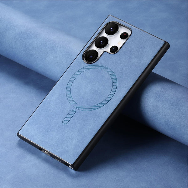 For Samsung Galaxy S25+ 5G Solid Color Retro Magsafe PU Back Cover Phone Case(Blue)