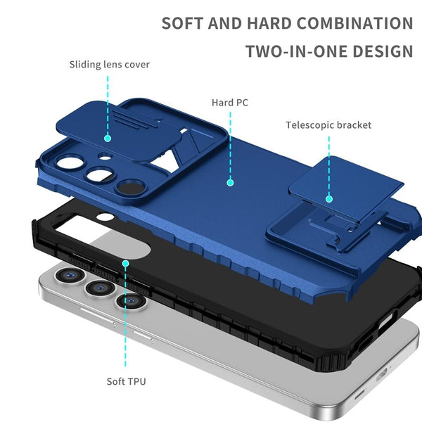 For Samsung Galaxy S25+ 5G Stereoscopic Holder Sliding Camshield Phone Case(Blue)