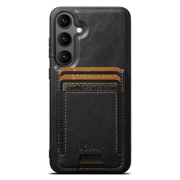 For Samsung Galaxy S25 5G Suteni H17 Oil Eax Leather MagSafe Detachable Wallet Phone Case(Black)