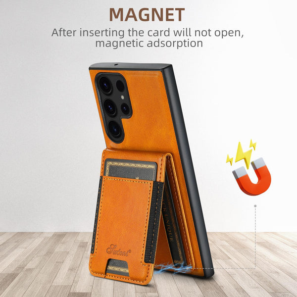 For Samsung Galaxy S25+ 5G Suteni H17 Oil Eax Leather MagSafe Detachable Wallet Phone Case(Khaki)