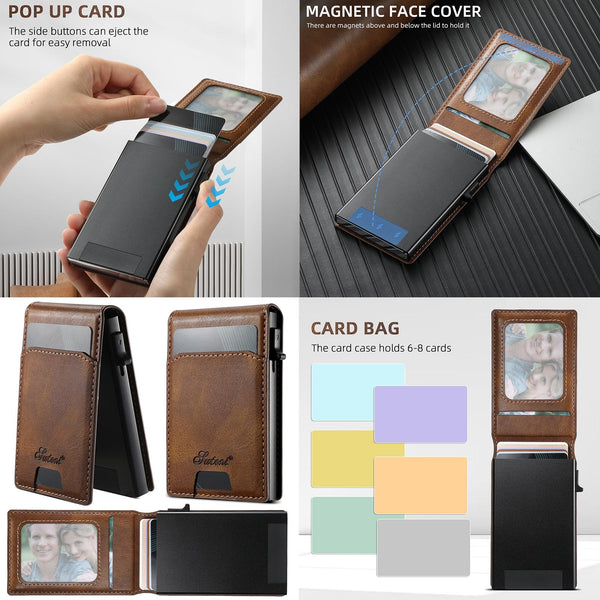 1. Material: PU leather +TPU+PC+ magnet + metal card box