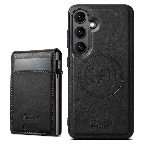 For Samsung Galaxy S25 5G Suteni H19 Oil Wax 2-in-1 MagSafe Removable Card Box Back Phone Case(Black)