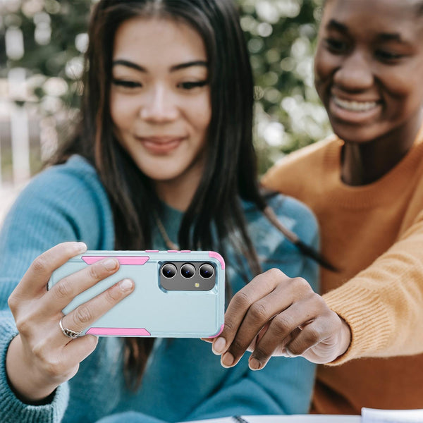 For Samsung Galaxy S25 5G TPU + PC Shockproof Protective Phone Case(Grey Green + Pink)