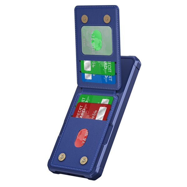 For Samsung Galaxy S25+ 5G Vertical Flip Card Bag Holder Leather Phone Case(Dark Blue)